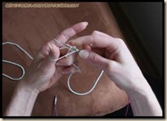 This special cast on is my adaptation from the “montage croisé formant une chaîne” (Cast on crossed making a chain) explained by Thérèse de Dillmont in her book Encyclopédie des ouvrages de Dames. This cast on is worked quite in the same way as the continental cast on. It gives a nice, decorative and stretchy border that bundle the stitches two-by-two.